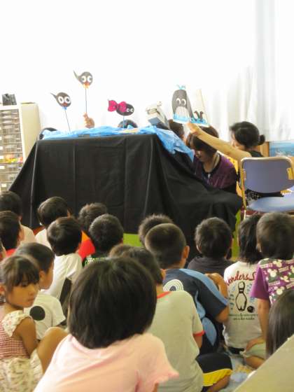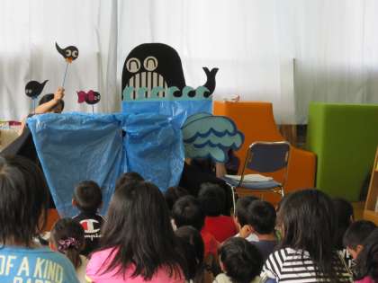 今日のお話は,「おたまじゃくし 海へ行く」でした。おたまじゃくしや大きなクジラが出てくると,子どもたちは身を乗り出して見ていました。