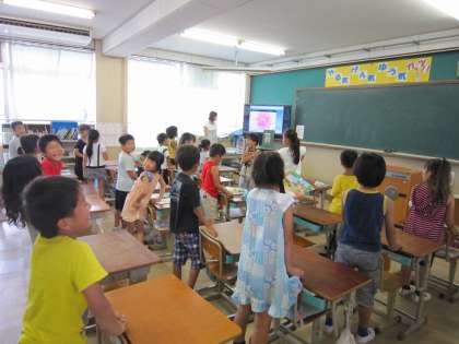 2年生は,音楽の時間に元気良く歌っていました。歌いながらリズムに合わせて体が動いていました。