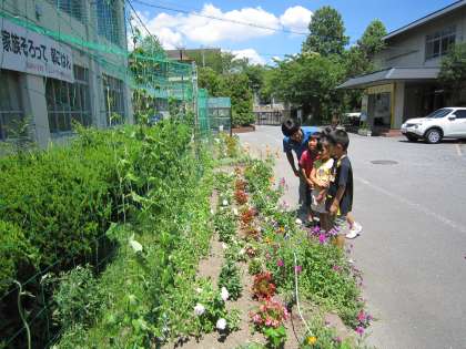 あさがおやにがうりを育てて,緑のカーテンをつくろうとしています。