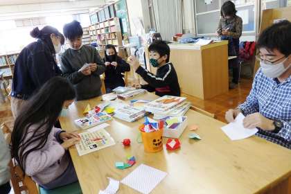 休み時間,図書委員の担当の子が集まって,準備をしています。何をしているのでしょう?