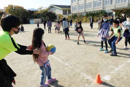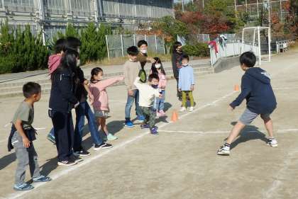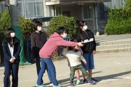 ボールをキャッチして1年生に優先的に渡してくれたり,的のように前に出てきたくれたり,投げ方を教えてくれたり……,とても優しいお兄さんお姉さんたちでした。