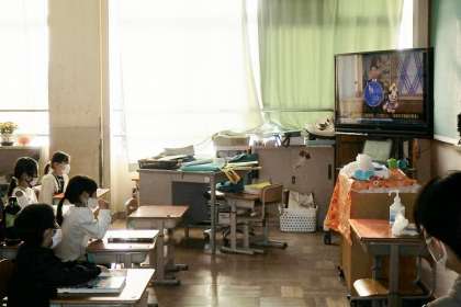 今日は児童朝会で,自転車の乗り方についてのビデオを見ました。普段の乗り方を振り返ってみて,安全に怪我なく自転車に乗れるようにしましょう!