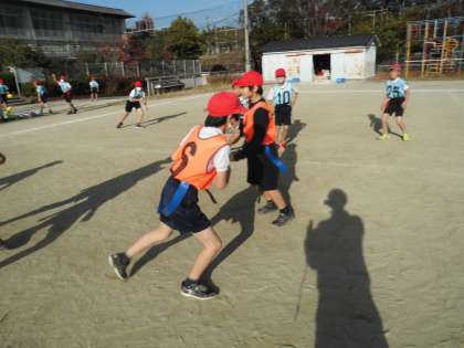 この秋晴れです。やっぱりタグラグビーをするしかありません。