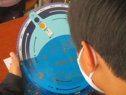 理科では,満月の動きの学習をしました。先週末に観察した月の動きを発表し,星座早見でいざ確認です。お家では白鳥座の観察を行ってもらいます。天気がよく,見えるといいですね!