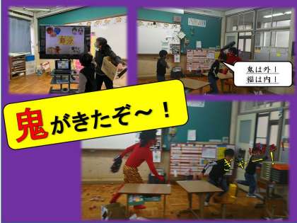 1回目の今日は,「鬼」が登場しました。迫力のある鬼に子どもたちは逃げ回っていました。