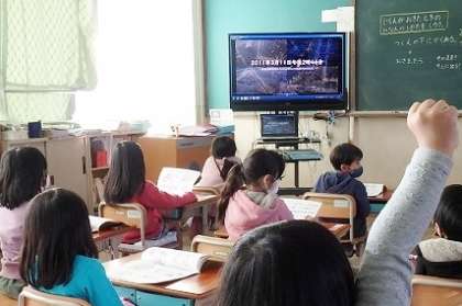 この日に合わせて作ってもらった避難訓練のビデオを見て,「いざという時どうしたらいいの?」と考えたり,避難する方法について学んだりしました。
