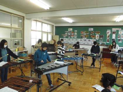 リズムに合わせて音を聞きながら自分で旋律をつくる学習をしています。難しそうですが,頑張っています。