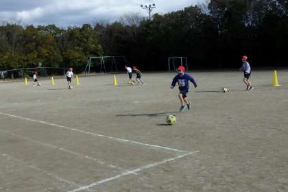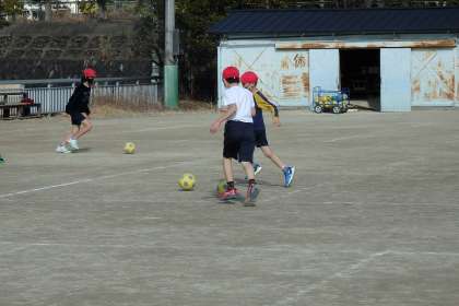 3年生の体育のようすです。今日はサッカーのボールを蹴る練習を行いました。力加減や蹴る向きを間違えると,ボールがあっという間に思わぬ方向へ転げていってしまいます。コーンを目指してまっすぐ蹴ることができるよう,一生懸命練習しました。