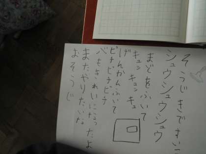 画用紙に書いて,絵もかきました。