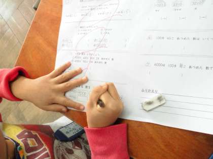 算数では大きな数「1000」をこえる数について学習しています。