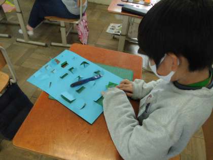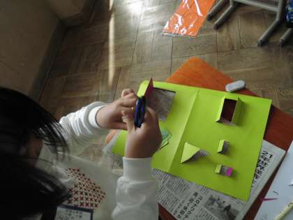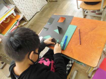 カッターナイフを上手に使い,作品にづくりに励んでいます。