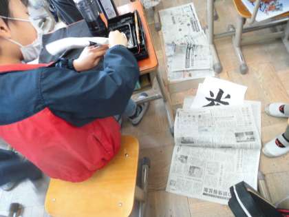 うれしいのは片付けの様子。硯は使用済みの半紙で墨汁をふき取る。