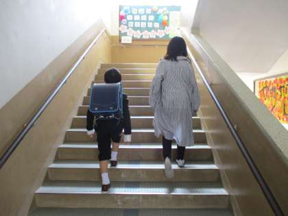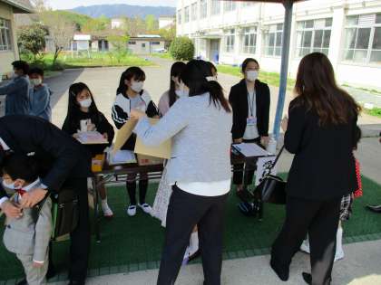 笑顔で1年生に話しかけたり,姿勢を低くして目線を合わせたりして,緊張した様子の1年生を優しい笑顔と心で包み込んでくれていました。