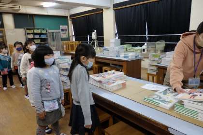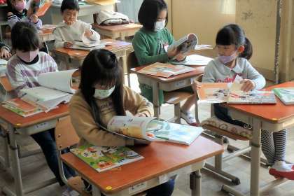 子どもたちは新しい教科書を早速開いて,