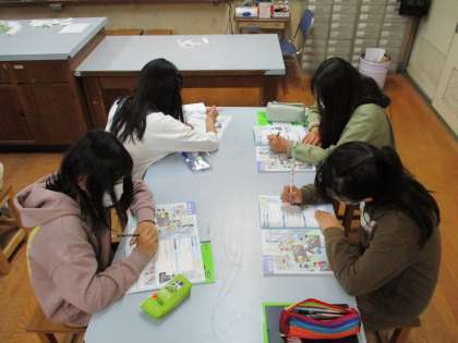 初日には福嶋先生の自己紹介,理科室の安全な使い方,そして理科の学習の進め方などについて話を聞きました。