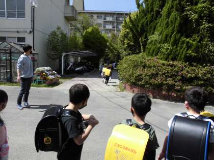 今日は子どもたちが先頭で,先生たちが後ろから見守りました。