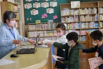 今日,2年生の子どもたちは,今年度初めて学校司書の先生にお会いしました。先生に挨拶をしてから,本を借りに行きます。