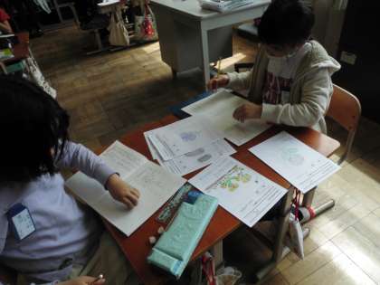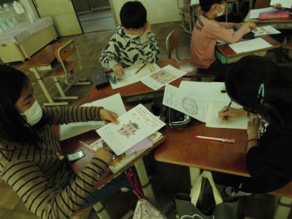 調べた観察カードを持ちより,3人グループで生きものの共通点やちがいを話し合いました。