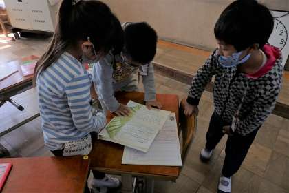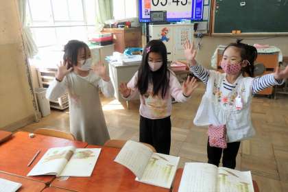 国語科『ふきのとう』では,登場人物のしたことや気持ちを考えながら,音読で表現しています。グループでの活動も始まり,役割を決めたり動きを考えたりしてたくさんの工夫をしていました。