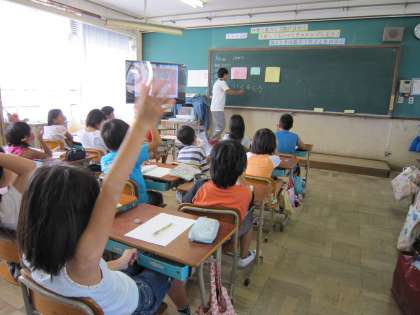 3つの花壇を見比べて,「どの花壇が広いか比べ方を考えよう。」というめあてをもって学習しています。