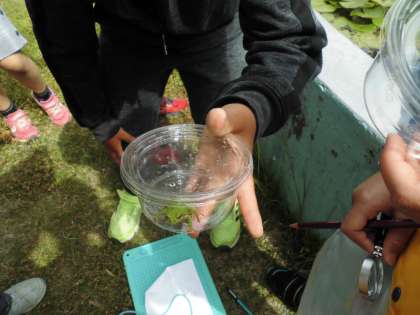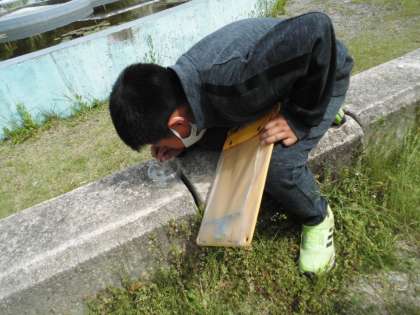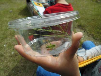 透明の行楽パックと蟲の呼吸を活用して「バッタ」「トンボ」「テントウムシ」「カマキリ」「カエル」などを観察することができました。