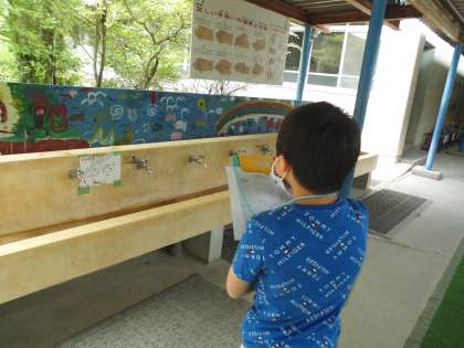 今日はみんなで分担し,学校にいくつ蛇口があるのかを調査しました。