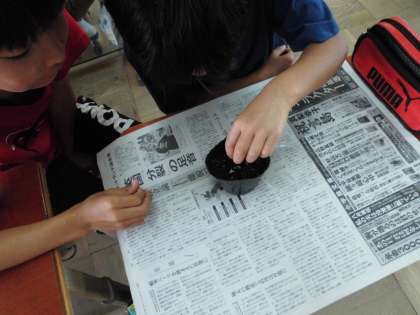 ツルレイシの種を観察後,そのまま土に植えました。芽が出てくるのを楽しみにしています。