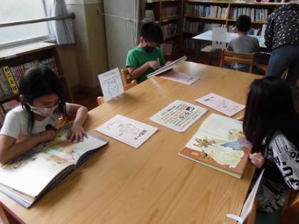 その後,実際に図書館へ行って,読みたいを本を選んで読んだり,借りたりしました。
