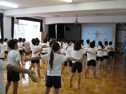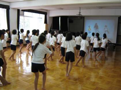 4年生は,先週から運動会団体演技「みんなでスクラム よさポップ」の練習を重ねています。