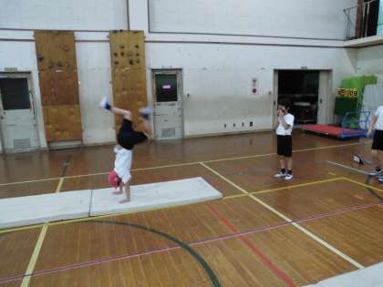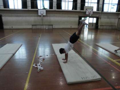 マット運動が始まりました。できる技の連続と,できるようになりたい技の練習の時間に分けて学習に取り組んでいます。
