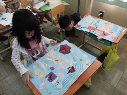 子どもたちはいろいろと話をしながら,自分が描いた世界を教えてくれました。
