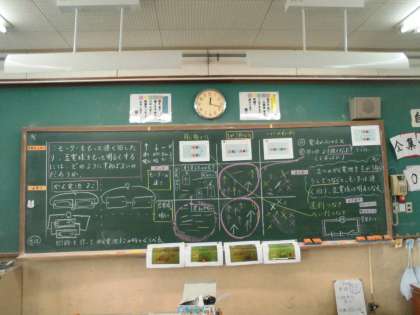 クラスの結果を黒板に集めると,