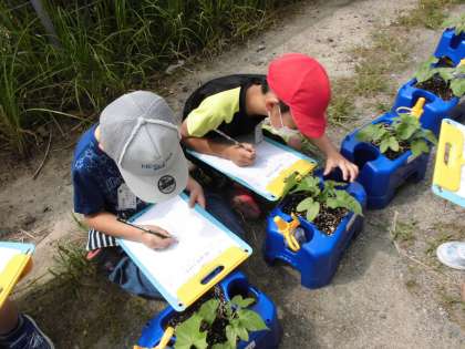 「先生,はっぱがふえてる!」「大きくなってきたよ。」