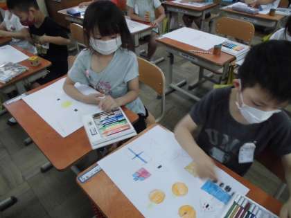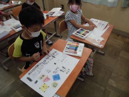 「もっとやりたい!」「おうちの人に見せたい。」と言っていました。絵を描いた用紙を持って帰りましたら,おうちでも話題にしてください。