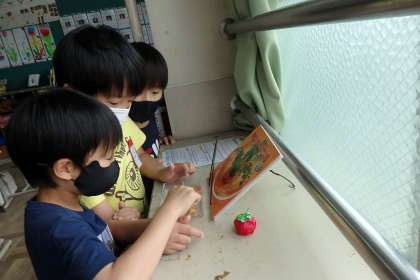 生活科の学習は,日常の中で継続的に取り組んでいます。お野菜の様子を観察したり,今の季節に見られる虫を捕まえて育ててみたり……。毎日小さい発見が見つかります。