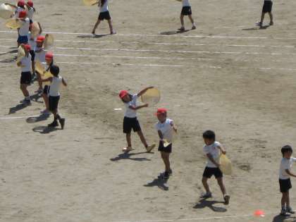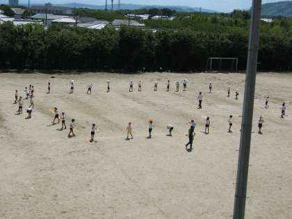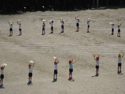 9月6日(火) 2年生は,運動場に出て団体演技「ガッツ! 花笠音頭」の練習をしました。運動場に出ると,自分がどこに立つとよいかなかなかわかりません。子どもたちは自分の立つ位置を確かめながら,練習に取り組んでいました。