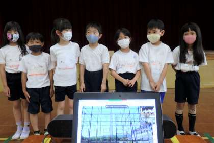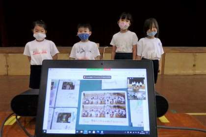 発表中は自分たちが撮影した写真を表示するため,顔が映るのは一瞬。それでも,初めて経験する『福西タイム』さらに,今年度トップバッターということもあり,ちょっと緊張気味の子どもたちです。