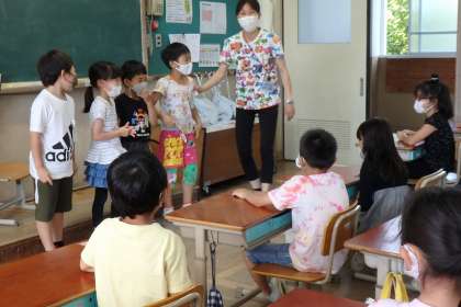 福西タイム後,2年生の教室にやってきてくれた1年生たち。