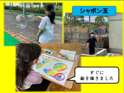 急な暑さで体も疲れていたので,みんなで“シャボン玉”をしてリフレッシュしました。