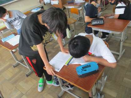 休み時間には漢字ドリルを使って最終確認をしたり,テスト直前まで友だち同士で問題を出し合ったりと,高得点目指して,前向きに頑張る姿がたくさん見られました。