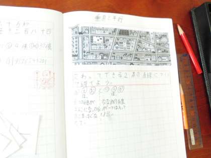 直線の交わり方から垂直について考えました。いろいろなところに垂直があるのを見つけることができました。
