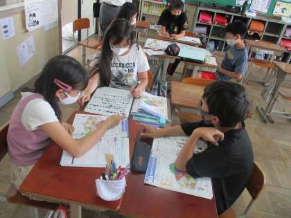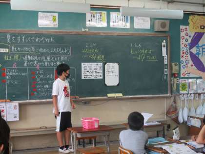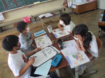 クラスみんなで話し合ったり,教科書を参考にしたりすることで,「打ち水で路面温度が下がるよ」「風鈴の音は涼しさを感じるよ」「どんなカーテンにするのかも大事だよ」など,家でしている工夫や,新たに取り入れたい工夫がたくさん見つかりました。