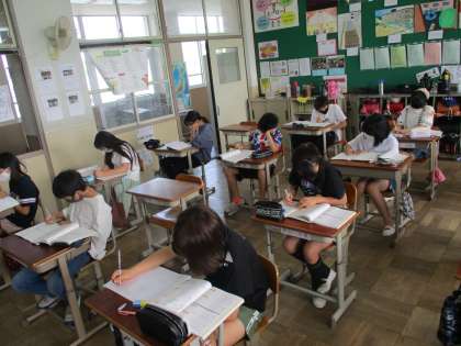 教室の中で聞こえるのは,鉛筆で文字を書く音のみ。ほどよい緊張感の中,集中して頑張ることができていました。