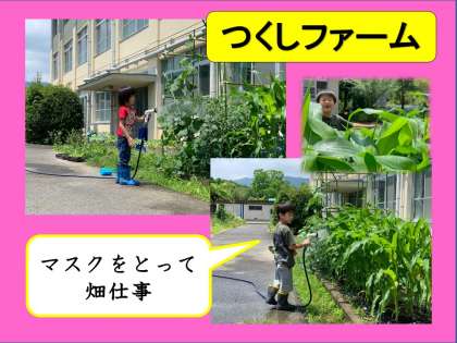 熱中症対策として,外ではできるかぎりマスクを外して活動しています。