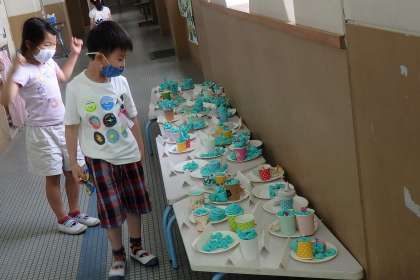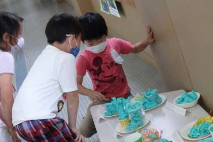と1年生と一緒に作品を覗き込む姿は,すっかり年上のお兄さんお姉さんです。
