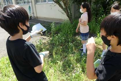 今の野菜の様子を写真に撮って観察したり,虫を捕まえて様子を調べたり……。