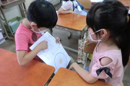 (答えをすでにおうちの人に言ってしまったと言っている子もいましたが,くちばしをどうやって使うかまでがんばって書いている子もいます。お楽しみに。)