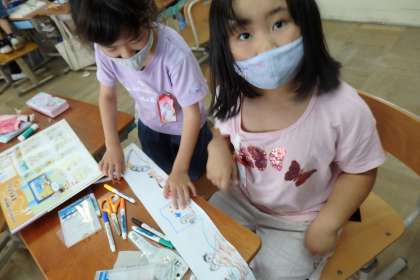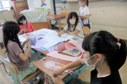 2年生の係活動のようすです。最近では,飾り係などの工作系の係以外も景品づくりをしたり,遊びに使う道具を手作りしたりしている様子が見られます,