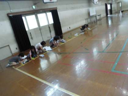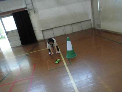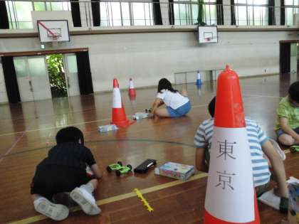 理科のゴムの働き車を使って,旅行気分を味わっていました。