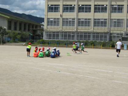 運動会へ向けて,今日から運動会選択種目「対抗リレー」の練習を始めました。